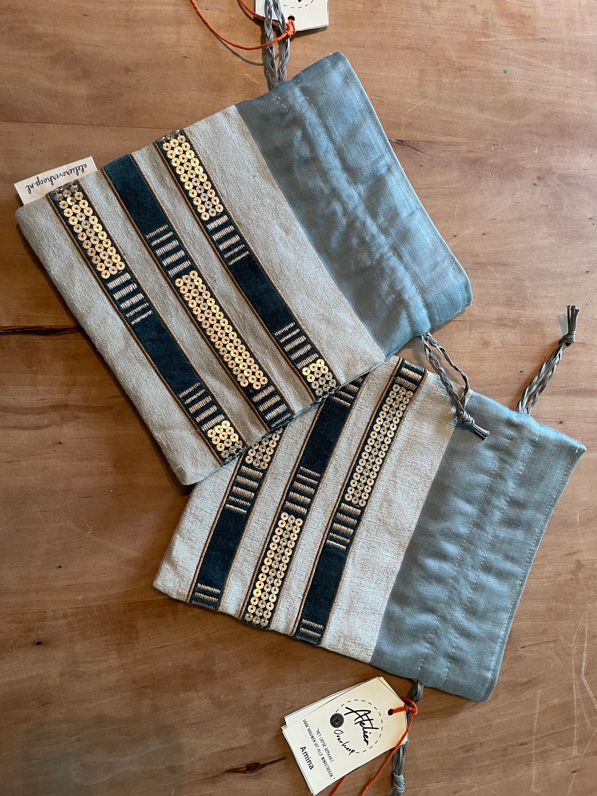 Stof - 3 kleuren met stiksels en pailletten